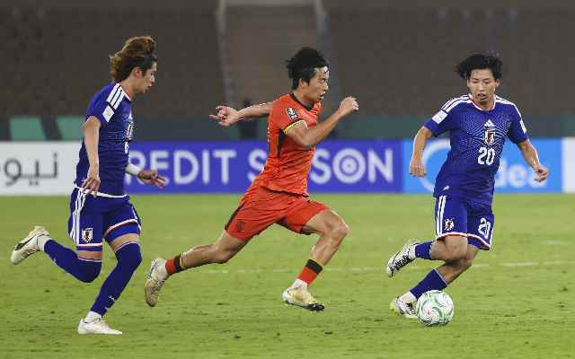 在2026年亚足联U23男足亚洲杯决赛中,中国队员奋力拼搏。新华社发